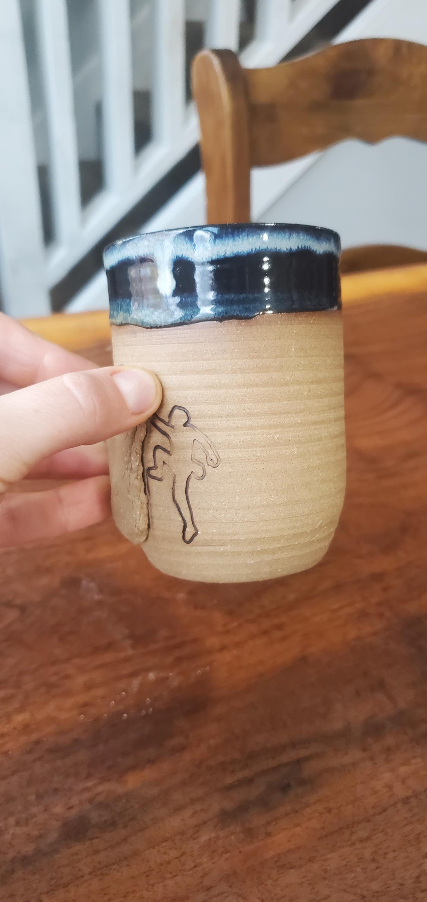 Do you know a climber that wants to practice everyday? With this handmade rock climbing tumbler, you can strengthen your crimp grip while drinking any beverage. It's especially perfect for matcha or other hot tea. When your friends or coworkers see you drink from it, they'll know you're a climber.